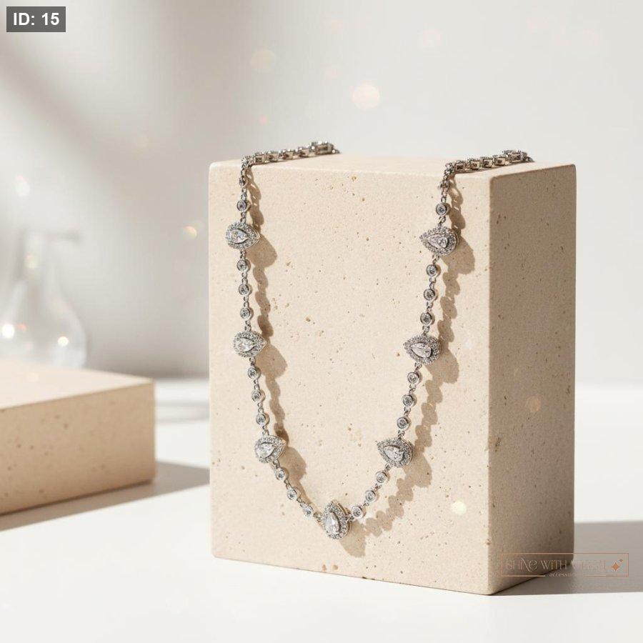 سنسال فاخر بتصميم أنيق مرصّع بحجار لامعة بشكل دمعة، مصنوع من خامة معدنية عالية الجودة ليمنحك إطلالة راقية ولمسة فخامة مميزة