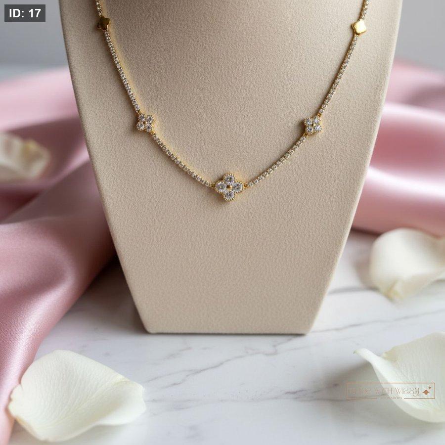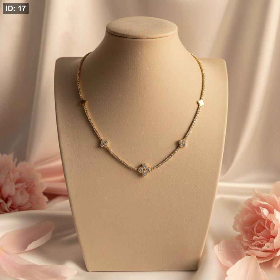 سنسال ذهبي ناعم مزين بتفاصيل كريستالية لامعة بتصميم أنثوي راقٍ، يضيف لمسة فخامة هادئة تناسب الإطلالات اليومية والمناسبات