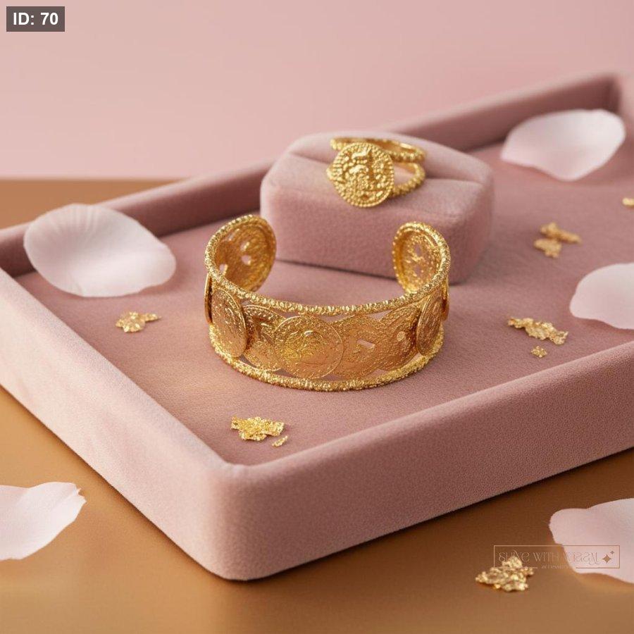 طقم فخم يجمع بين الخاتم والأسوارة، بخامة ممتازة وتفاصيل دقيقة تضيف لمسة راقية لكل إطلاله