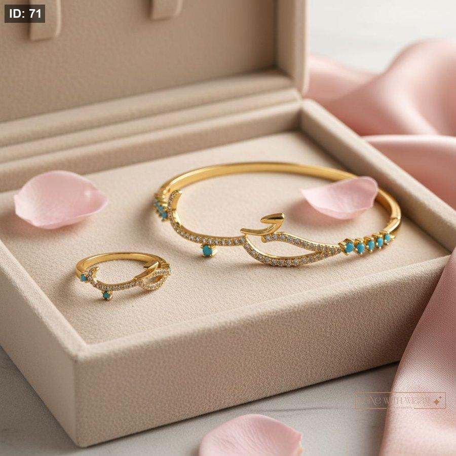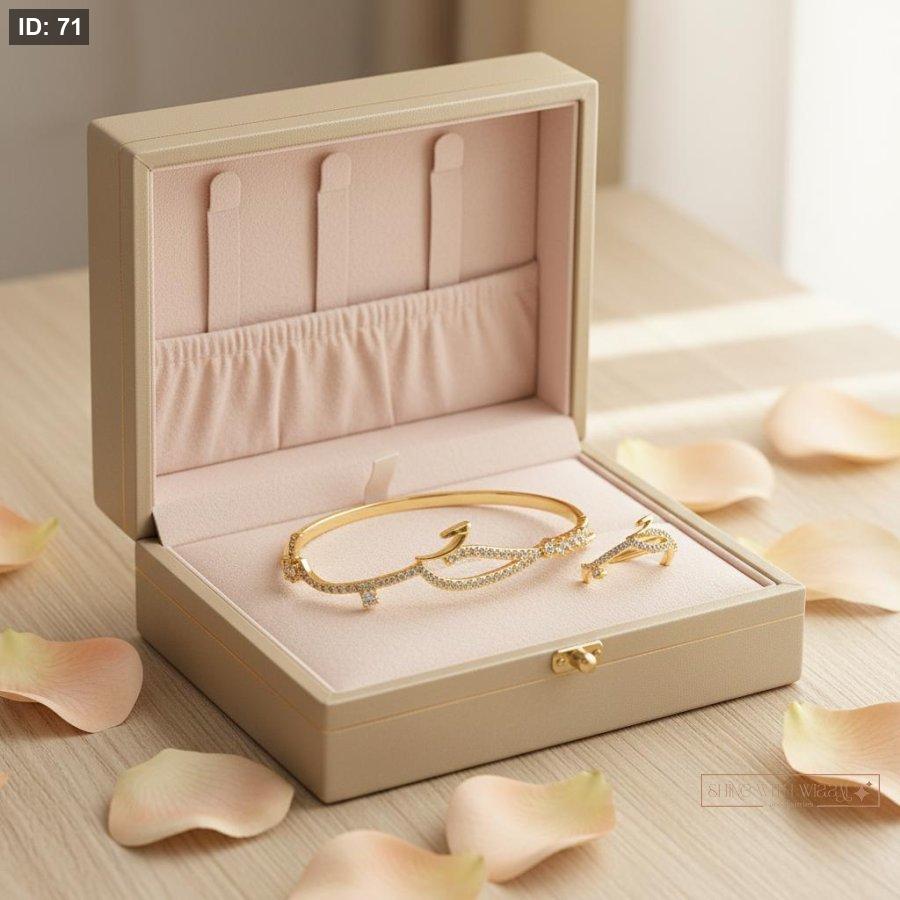 خاتم وأسوارة بتصميم كلمة حب وخامة مختارة بعناية، قطعة أنيقة تحمل معنى جميل وتضفي لمسة دافئة على إطلالتك.