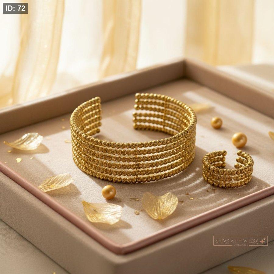 خاتم وأسوارة بتصميم فخم ولمسة أنثوية راقية، يجمعان بين الأناقة والمتانة لإطلالة متكاملة تناسب المناسبات الخاصة.